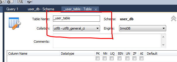스키마 밑에 마우스 우클릭 name 입력 -> utf8 선택